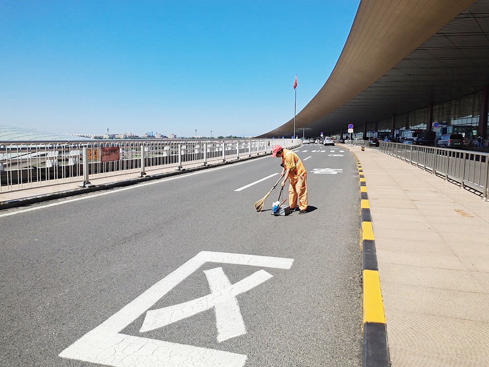 在首都機(jī)場的聯(lián)絡(luò)線上,瀝青路面被烈日烤得發(fā)燙,往來車輛卷起的熱浪更讓人喘不過氣來。環(huán)衛(wèi)工人夏六貴手持清掃工具,正沿著路邊快速清掃垃圾。作為首都機(jī)場公共區(qū)環(huán)衛(wèi)隊(duì)伍的一員,他不僅要及時(shí)清掃路面雜物,還要保證路段整體潔凈,哪怕高溫把空氣烤得發(fā)黏,他每天的清掃也從不打折扣。