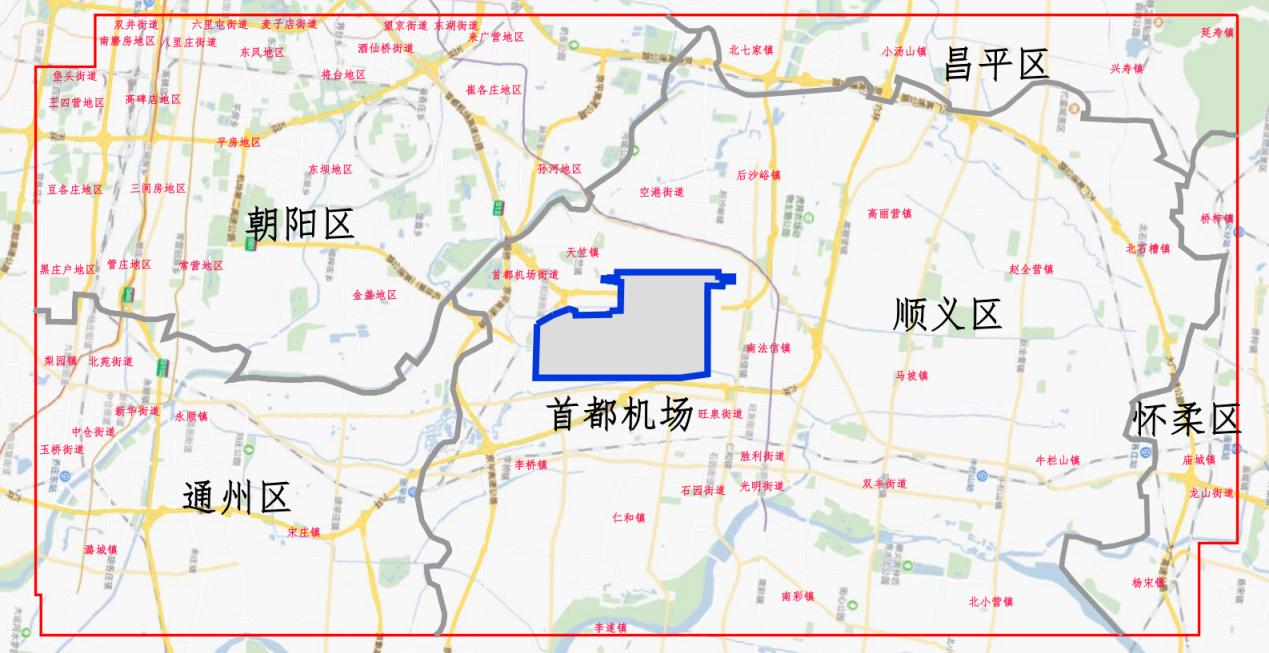 首都機(jī)場凈空重點保護(hù)區(qū)域(凈空巡視檢查區(qū)域)范圍為首都機(jī)場跑道中心線兩側(cè)各10公里、跑道端外各20公里以內(nèi)的區(qū)域,涉及順義區(qū)、朝陽區(qū)、通州區(qū)、昌平區(qū)及懷柔區(qū)部分區(qū)域,總面積約1050平方公里。