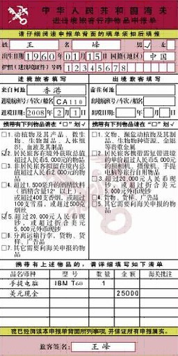 2. 除海關(guān)免于監(jiān)管的人員以及隨同成人旅行的16周歲以下旅客以外,進(jìn)出境旅客攜帶有應(yīng)向海關(guān)申報(bào)物品的,應(yīng)首先在申報(bào)臺(tái)前向海關(guān)遞交《中華人民共和國(guó)海關(guān)進(jìn)出境旅客行李物品申報(bào)單》,如實(shí)申報(bào)所攜運(yùn)進(jìn)出境的行李物品。進(jìn)出境旅客對(duì)攜運(yùn)的行李物品以上述以外的其它任何方式或在其它任何時(shí)間、地點(diǎn)所做出的申明,海關(guān)均不視為申報(bào)。