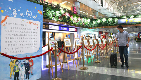 6月1日至2日,首都機(jī)場(chǎng)在2號(hào)航站樓和3號(hào)航站樓內(nèi)舉辦《“童”在國(guó)門下》兒童主題畫展。本次展覽共三個(gè)主題,分別為:共同戰(zhàn)疫、“童”在國(guó)門、“童”言同語(yǔ),通過(guò)線上“云賞”和線下展覽相結(jié)合的方式進(jìn)行呈現(xiàn)。