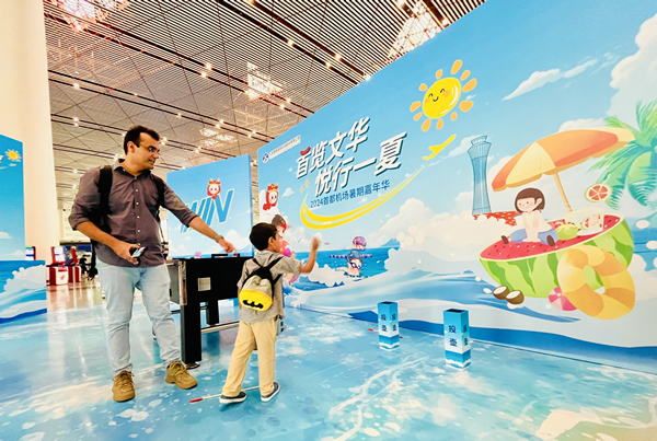 7月30日,首都機(jī)場(chǎng)在3號(hào)航站樓開(kāi)展了“首覽文華?悅行一夏”暑期嘉年華服務(wù)文化活動(dòng),通過(guò)開(kāi)展以旅客服務(wù)產(chǎn)品為主題的文化活動(dòng),弘揚(yáng)和傳播中華優(yōu)秀傳統(tǒng)文化,提升旅客出行體驗(yàn)。此次活動(dòng)結(jié)合巴黎奧運(yùn)會(huì)、跨境旅游等元素提升旅客出行體驗(yàn)。旅客只需要打開(kāi)微信掃一掃首都機(jī)場(chǎng)小程序二維碼,注冊(cè)成為會(huì)員,即可參與任意互動(dòng)體驗(yàn),并有機(jī)會(huì)獲得首都機(jī)場(chǎng)精美文創(chuàng)禮品。旅客在參與多種文體互動(dòng)項(xiàng)目的同時(shí),還可以與首都機(jī)場(chǎng)服務(wù)產(chǎn)品形象IP“都都”進(jìn)行互動(dòng)。持續(xù)兩天的活動(dòng)現(xiàn)場(chǎng)氣氛熱烈,旅客積極參與各項(xiàng)文體活動(dòng),感受到了運(yùn)動(dòng)的快樂(lè)和文化的魅力。(徐揚(yáng)攝影報(bào)道)
