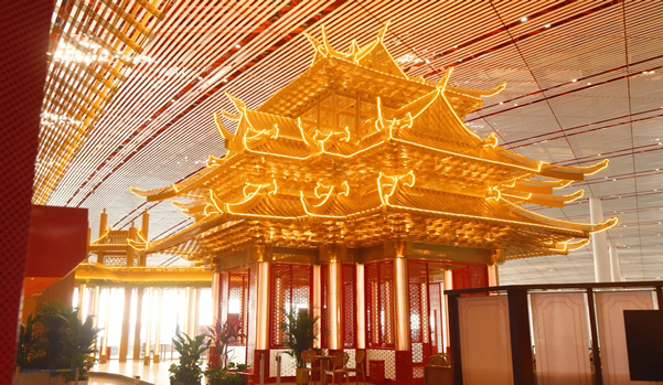 1月26日春運第一天,首都機場3號航站樓五層東浮島重裝亮相,開始試營業(yè)。東浮島以北京故宮為創(chuàng)作靈感,以青龍為文脈,以代表東方星宿的故宮角樓為藝術(shù)符號,在有限的空間里最大限度地把皇城元素囊括其中。公共就餐區(qū)環(huán)繞著以紫禁城風格為主題的中央廚房區(qū)和以御花園景觀打造的觀景平臺區(qū),并利用圍欄營造山水畫廊區(qū),亮點紛呈。據(jù)悉,東浮島將打造“餐飲+文化”的體驗中心,不定期進行文藝演出,形成以餐飲為核心,集合京劇、戲劇、大鼓、古箏等多種傳統(tǒng)藝術(shù)文化的體驗空間,讓中外旅客在多品牌特色菜品和多種類中國文化感染下,感受美好的“餐飲+文化”體驗。