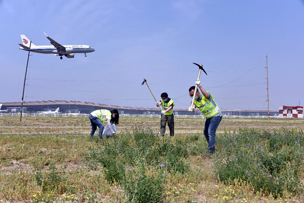 時值飛行區(qū)場內(nèi)開展鳥害治理的關(guān)鍵時期,首都機場股份公司團委積極對接基層需求,號召公司青年深入基層一線,開展苜蓿除草,服務(wù)安全生產(chǎn)?;顒娱_始前,飛行區(qū)管理部相關(guān)業(yè)務(wù)負責(zé)人作了關(guān)于苜蓿除草作業(yè)的現(xiàn)場專項培訓(xùn),介紹了苜蓿生長的季節(jié)性特點和危害,闡述了民航局的相關(guān)管理標準的重要性,并向青年講解了苜蓿除草作業(yè)的方法和流程。來自公司16個職能部門、7個基層團總支的青年,分5組沿東跑道東側(cè)土質(zhì)區(qū)清除苜蓿,用時約2小時,累計除草面積約10000平方米。在勞動過程中,來自公司職能部門的青年紛紛表示,“這是落崗在職能部門的青年熟悉、了解基層業(yè)務(wù)的全新契機”“‘基層跟班日’打開了機關(guān)青年看基層的新視角”“樸實而接地氣,有機會還想來體驗”。