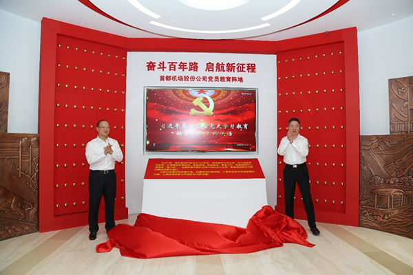為慶祝中國共產(chǎn)黨成立100周年,教育引導(dǎo)全體黨員持續(xù)深入學(xué)習(xí)百年黨史,感悟思想偉力,從百年奮斗歷程中汲取智慧力量,以昂揚(yáng)姿態(tài)奮力開啟全面建設(shè)社會主義現(xiàn)代化國家新征程,6月30日,首都機(jī)場股份公司黨委組織開展了6月黨委理論學(xué)習(xí)中心組(擴(kuò)大)學(xué)習(xí)、主題黨日暨黨員教育陣地落成儀式。