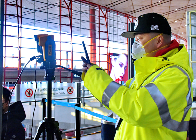 1月24日,大年三十,是疫情防控工作進行的第4天。早上8時,王岳手機收到“迅速落實進港旅客測溫點”的工作任務,簡簡單單跟愛人、孩子交代了一下,他便急忙趕回樓內?!皶r間緊、任務重、點位多,同時又要保證旅客流程點位的合理,是這次現(xiàn)場布置最大的困難?!?雖然平時已將旅客進出港流程熟記于心,但為了確保測溫點位的設置準確高效,不遺漏任何一名旅客,王岳再一次前往旅客現(xiàn)場,一個流程一個流程地過,一個點位一個點位地看,最終在3座航站樓、170萬平米的范圍內選取了12個最佳測溫設置點。隨后,他緊急協(xié)調相關模塊設置臨時電源、醫(yī)療人員的物資配備,以及桌椅、屏風、拉帶等物品。