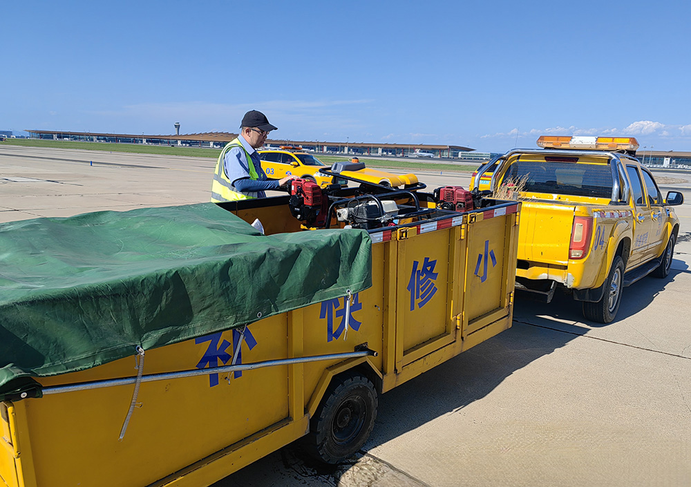16時(shí)的二次攻堅(jiān)更是一場(chǎng)嚴(yán)酷的考驗(yàn)?!翱焖偬幹?、保障通行”是查道員唯一的目標(biāo)。每天下午3條跑道例行檢查結(jié)束后,查道員還要在16時(shí)~16時(shí)30分進(jìn)行一次中跑道道面情況的重點(diǎn)檢查,一旦發(fā)現(xiàn)病害前兆便迅速開(kāi)展預(yù)處理。汗珠從臉上滑落,但沒(méi)人顧得上擦拭,砸在滾燙的道面上瞬間蒸發(fā)。