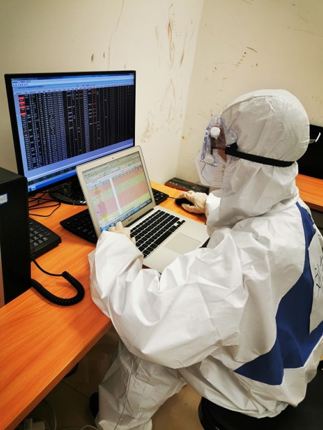 由于指揮部設在T3-D隔離區(qū)內,她們在上下班路途中難免會路過樓內的隔離轉運通道,因此做好自我防護也成為她們工作中一項重要的任務。突擊隊每個班次配備一套一次性防護服,為了避免頻繁穿脫造成的二次污染,十余個小時的工作期間,她們都盡量少喝水,實在覺得口干舌燥時,只會稍微喝一點兒潤潤喉嚨,盡量等到交接班完畢離開T3-D之后再去衛(wèi)生間,這對于作為女生的她來說更加不便。
