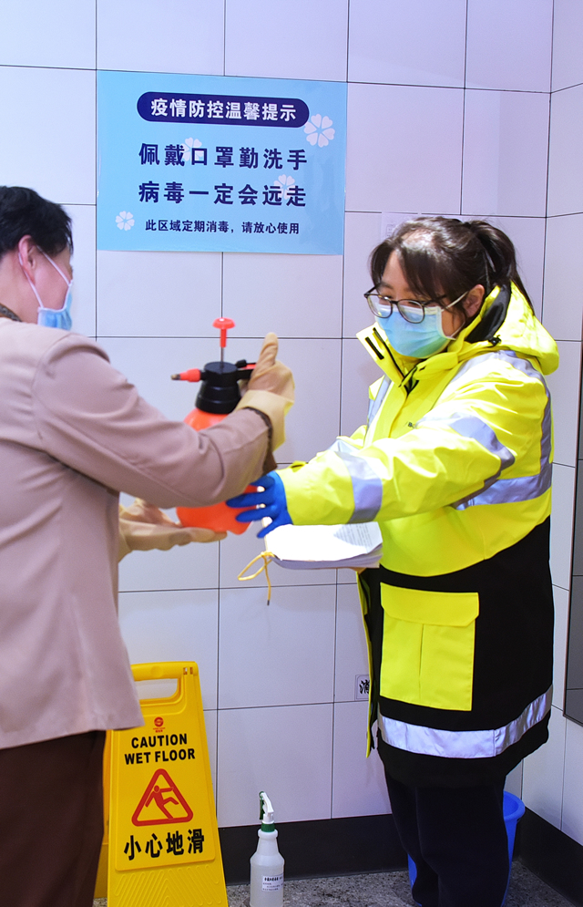 在疫情防控期間,首都機場加強了現(xiàn)場巡視檢查的頻次,既檢查現(xiàn)場的消毒情況,確保消毒按規(guī)定進行,又關(guān)注保潔人員的身體健康和勞動防護用具的配備,保證一線員工的工作安全。
