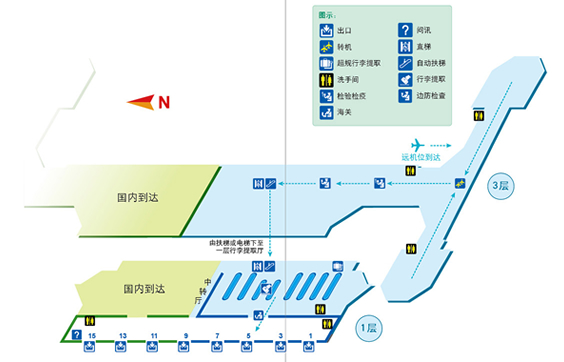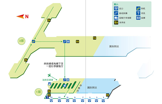 進(jìn)入航站樓以后,您可參照航站樓內(nèi)到達(dá)旅客的引導(dǎo)標(biāo)識前往行李提取大廳。